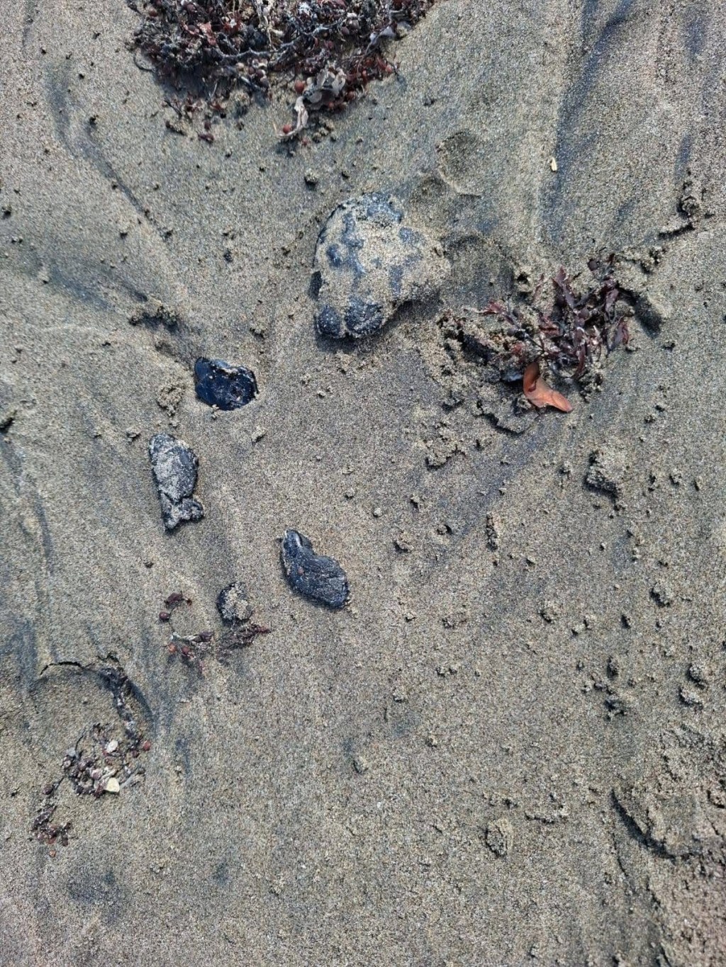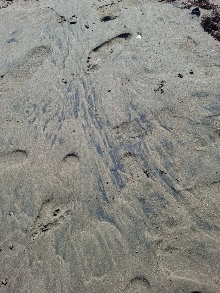 Visitantes de la playa de La Mancha, en Actopan, Veracruz, continúan reportando la presencia de chapopote en la arena y a la orilla del mar.