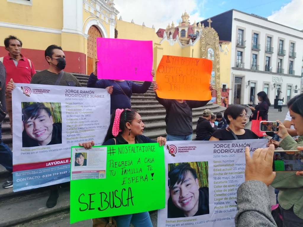 Xalapa, Ver. Entre la desesperación e incertidumbre, familiares de Jorge Ramón Rodríguez Juárez de 23 años, protestaron la mañana de este jueves en Plaza Lerdo para exigir la aparición del joven pues desde el pasado 29 de octubre no saben de él.