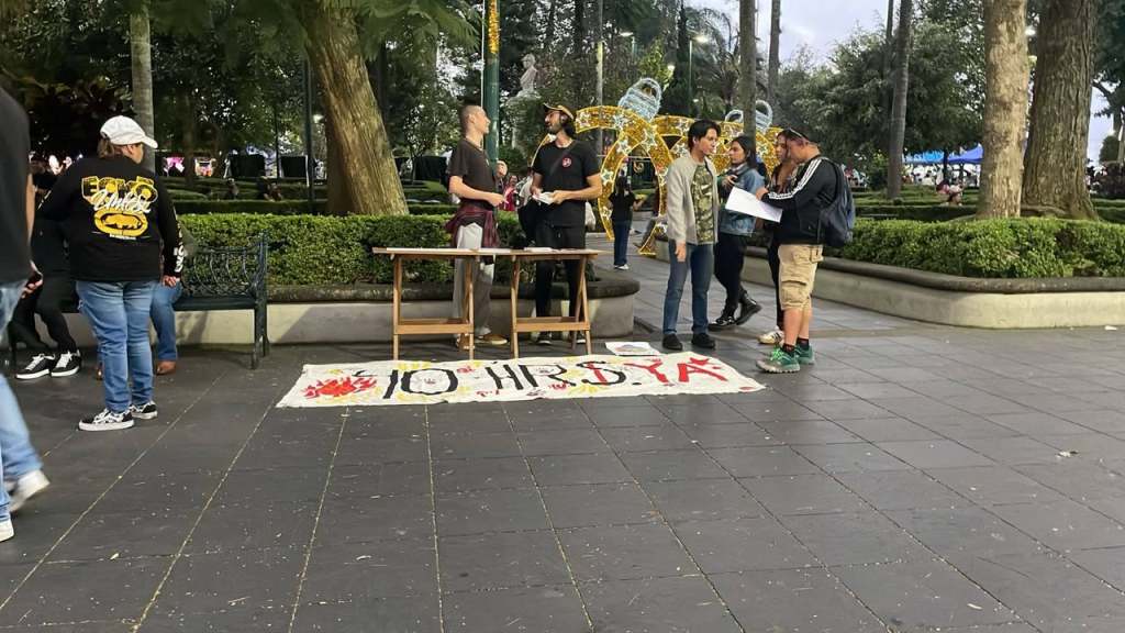 Xalapa, Ver. Jóvenes del Frente por las 40 Horas se sumaron desde el parque Juárez a la jornada nacional para exigir la reducción de la jornada laboral.