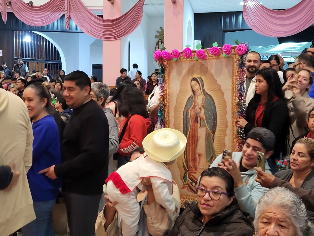 Xalapa, Ver.- Cientos de peregrinos acuden está noche a la Basílica Menor de Nuestra Señora de Guadalupe, familias, niños, jóvenes y adultos mayores llenos de fe llegan al recinto para orar, pedir por sus seres queridos y agradecer los milagros recibidos. Con cantos los fieles llegan con imágenes, coronas, ramos de flores para visitar en su día a la Morenita del Tepeyac.