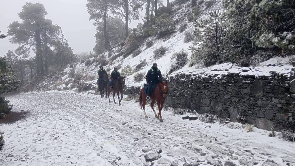Mientras el año se despide, la Unidad Montada de la Secretaría de Seguridad Pública sigue recorriendo senderos y vigilando el Parque Nacional Cofre de Perote, como parte del operativo Guadalupe–Reyes.