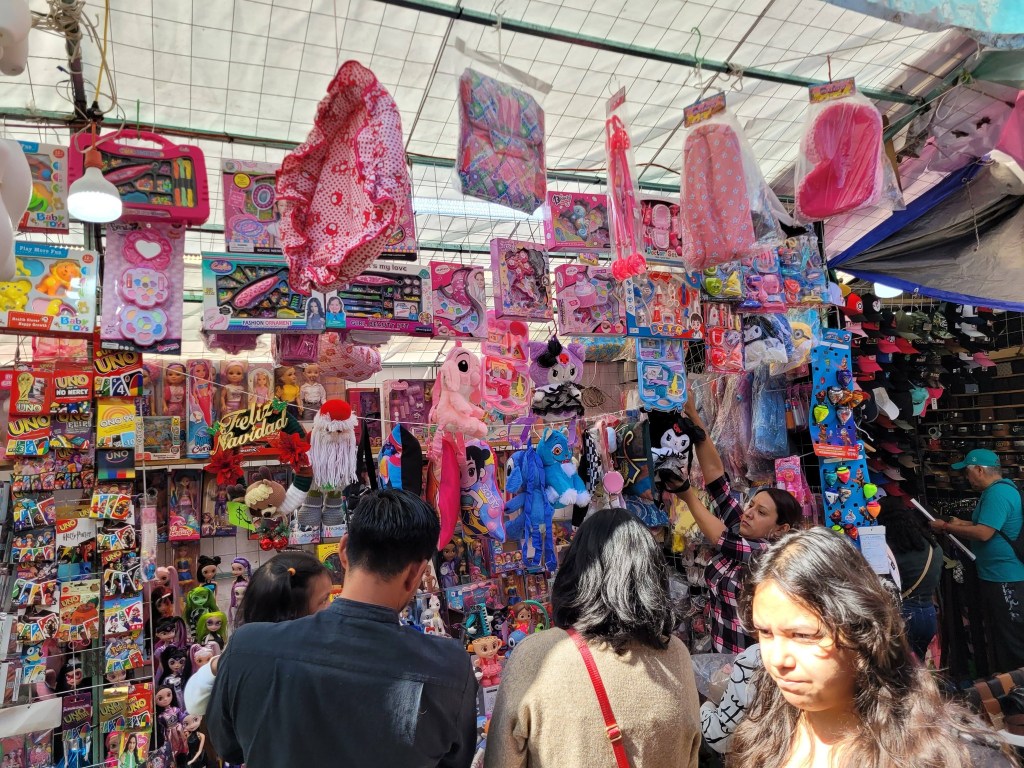 Vendedores ambulantes aprovechan la temporada para ofrecer juguetes a precios accesibles, mientras mamás y papás recorren la zona buscando el regalo ideal para estas fechas ![]()