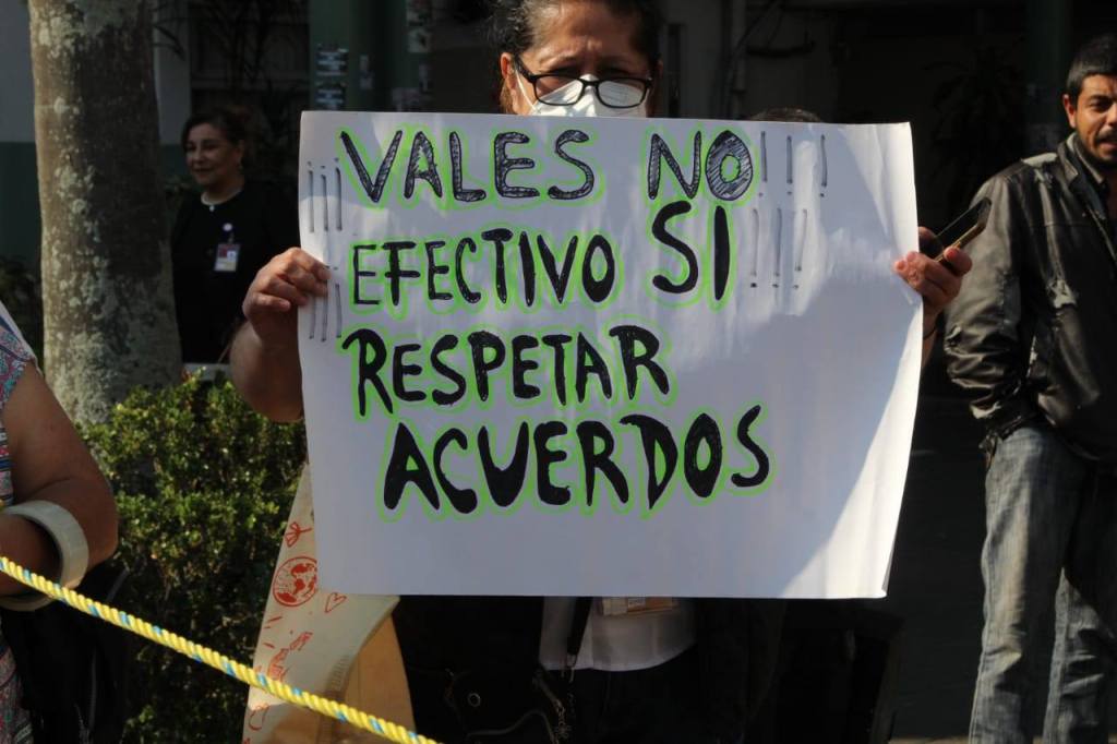 Personal del Hospital Regional de Xalapa “Dr. Luis F. Nachón” mantiene su protesta para exigir que el bono navideño sea pagado en efectivo y no mediante una tarjeta con uso limitado a una sola tienda.